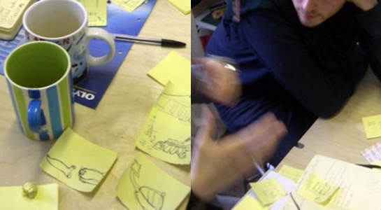 Other tools, such as brainstorming allow for a rapid exploration of ideas. Often these brainstorms include end-users and cross-disciplinary specialists.